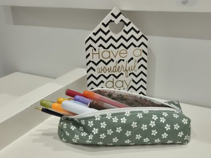 Estuche escolar artesanal sencillo de una cremallera, diseñado para ofrecer