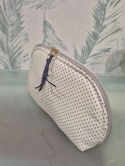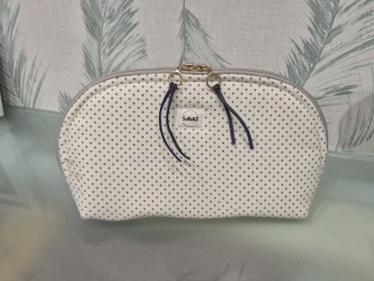 Neceser redondo artesanal con estampado de lunares en telas ecológicas