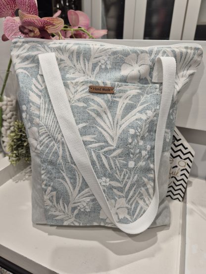 Tote bag ecológica hecha a mano con bolsillo frontal y cremallera